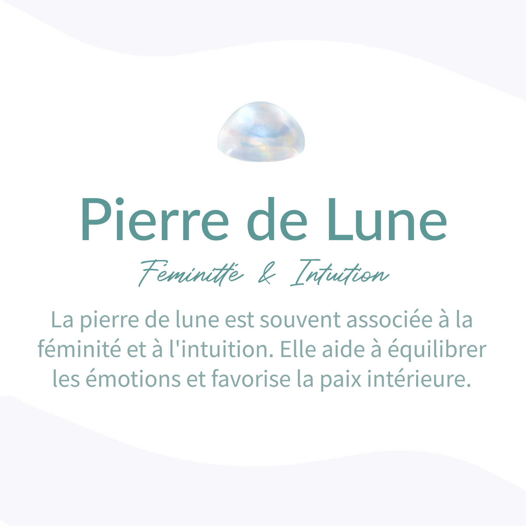 Moonstone is traditionally valued for its calming properties: it helps alleviate stress, promotes intuition, and balances emotions. It is particularly precious for those who wish to reconnect with their sensitivity and move forward with confidence.