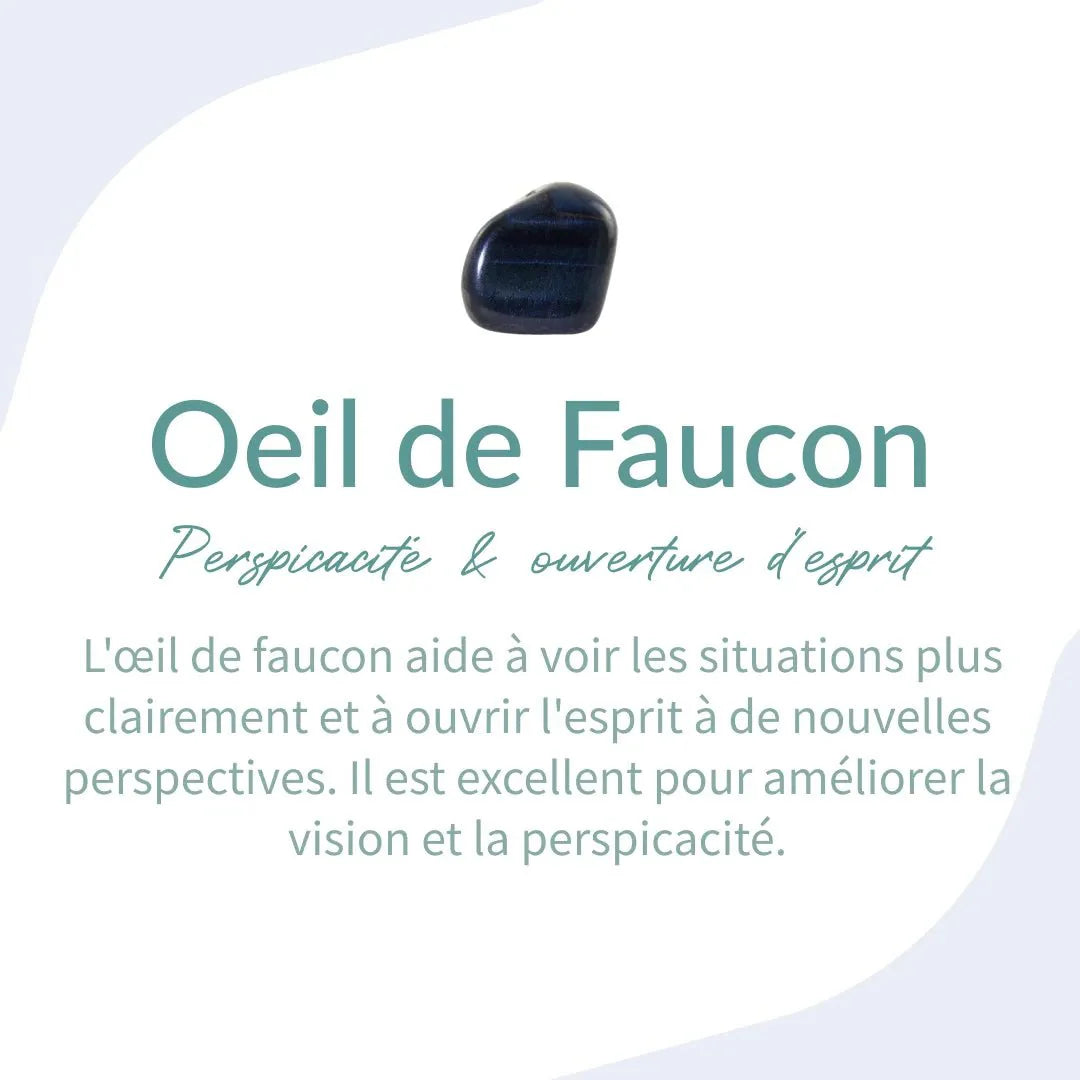 Hawk's Eye represents the guardian angel who sees everything. It promotes vision and intuition. It provides a better overview in difficult situations and allows for making the right decisions. It is a magical stone that builds a protective shield all around you to combat life's threats. Known for enhancing the soul, it brings knowledge and clarity to thoughts to see the reality of life.