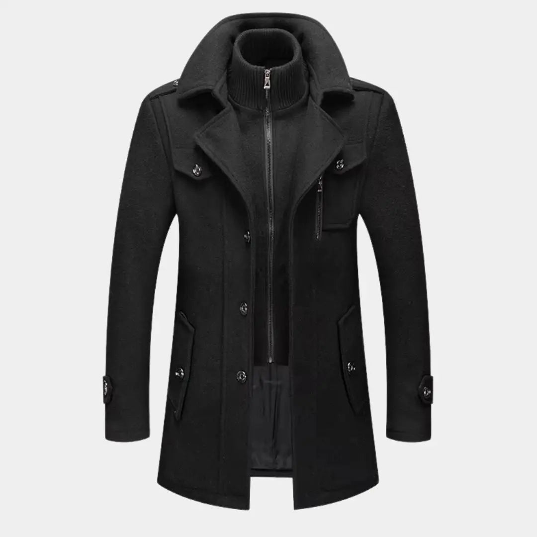 Treat yourself to luxurious and exclusive fashion with our Aristocratic Black Wool Overcoat. Crafted from the finest wool, this coat exudes sophistication and taste. With its simple and elegant design, it is the perfect addition to your wardrobe for any occasion. Elevate your style and showcase your elite status with this timeless coat.
