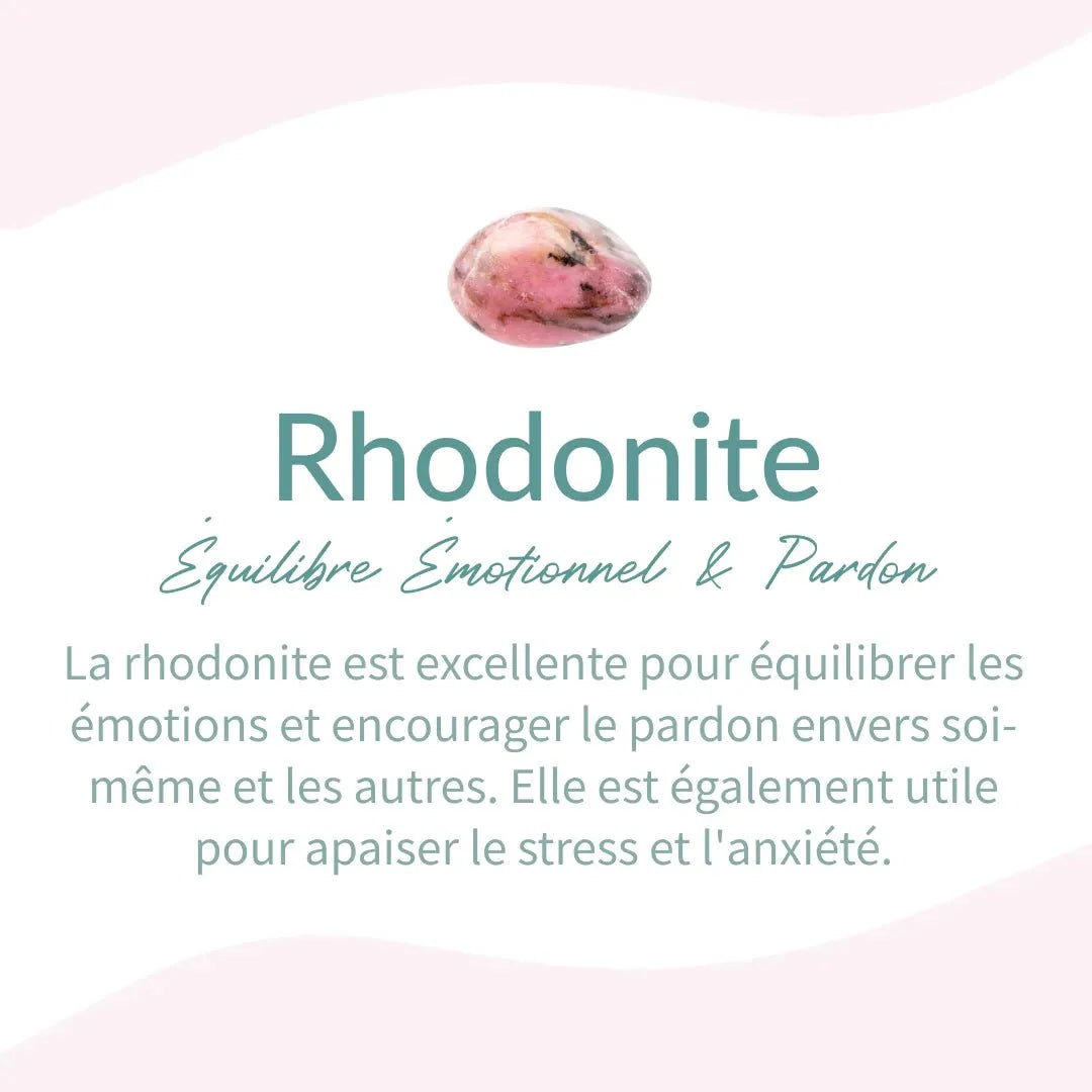 - Rhodonite: A haven of peace, it brings peace of mind and helps heal past traumas. Excellent for children, it enhances learning ability and is linked to the heart chakra.
