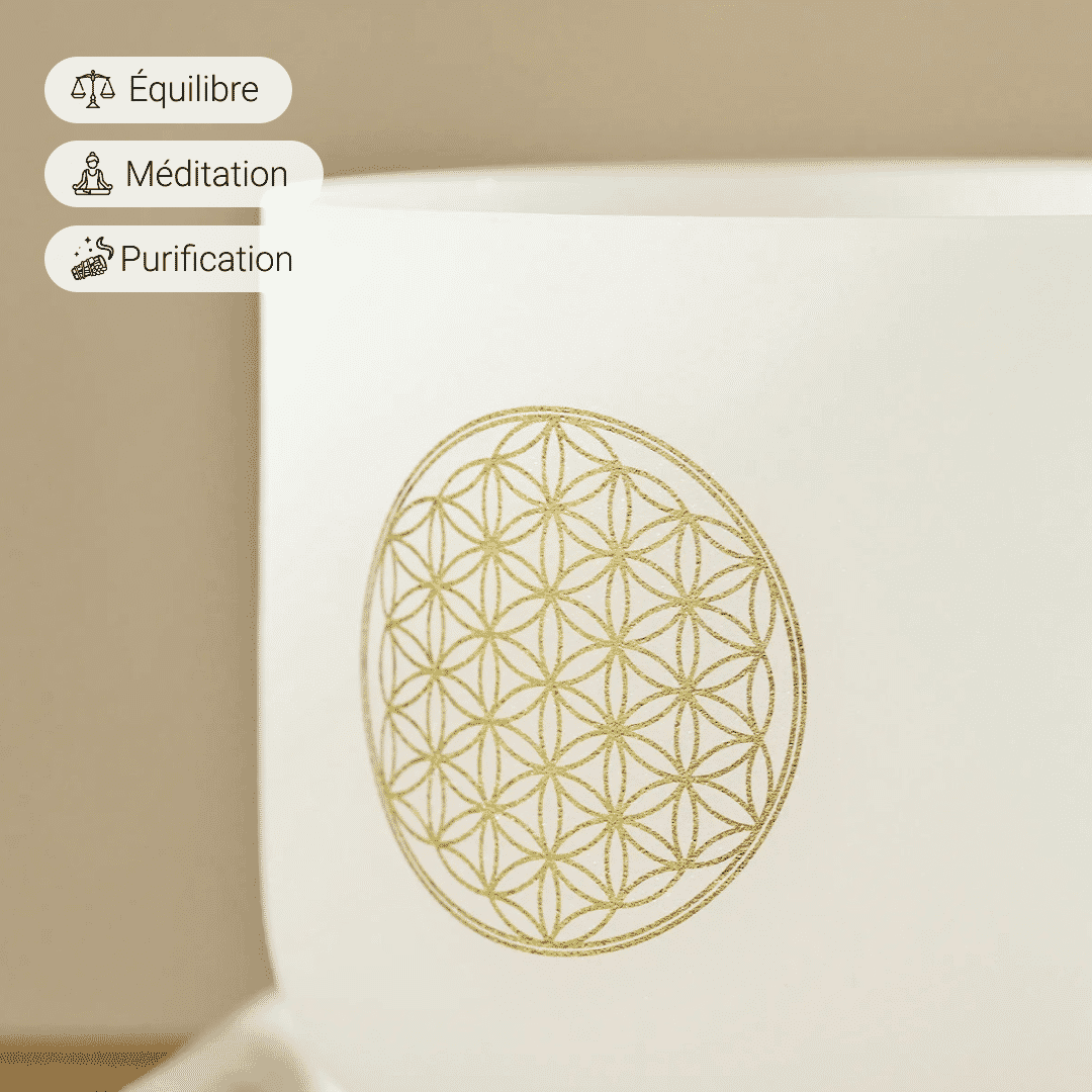 Dive into a deep wellness experience with our "Flower of Life" Crystal Singing Bowl. Let yourself be transported by its purity and harmonious frequency, and discover the unlimited benefits of sound therapy.